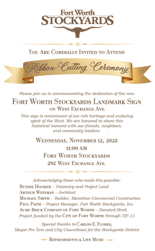 Please join us in commemorating the dedication of the new Fort Worth Stockyards Landmark Sign on West Exchange Avenue ✂️