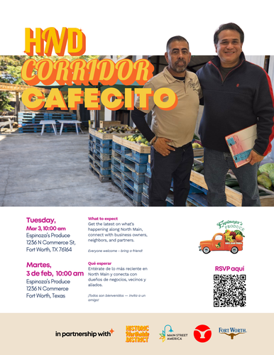 Join us for Corridor Cafecito on Tuesday, March 3rd — our traveling, come-as-you-are morning gathering that rotates between small businesses and community spaces along the Historic Northside corridor.